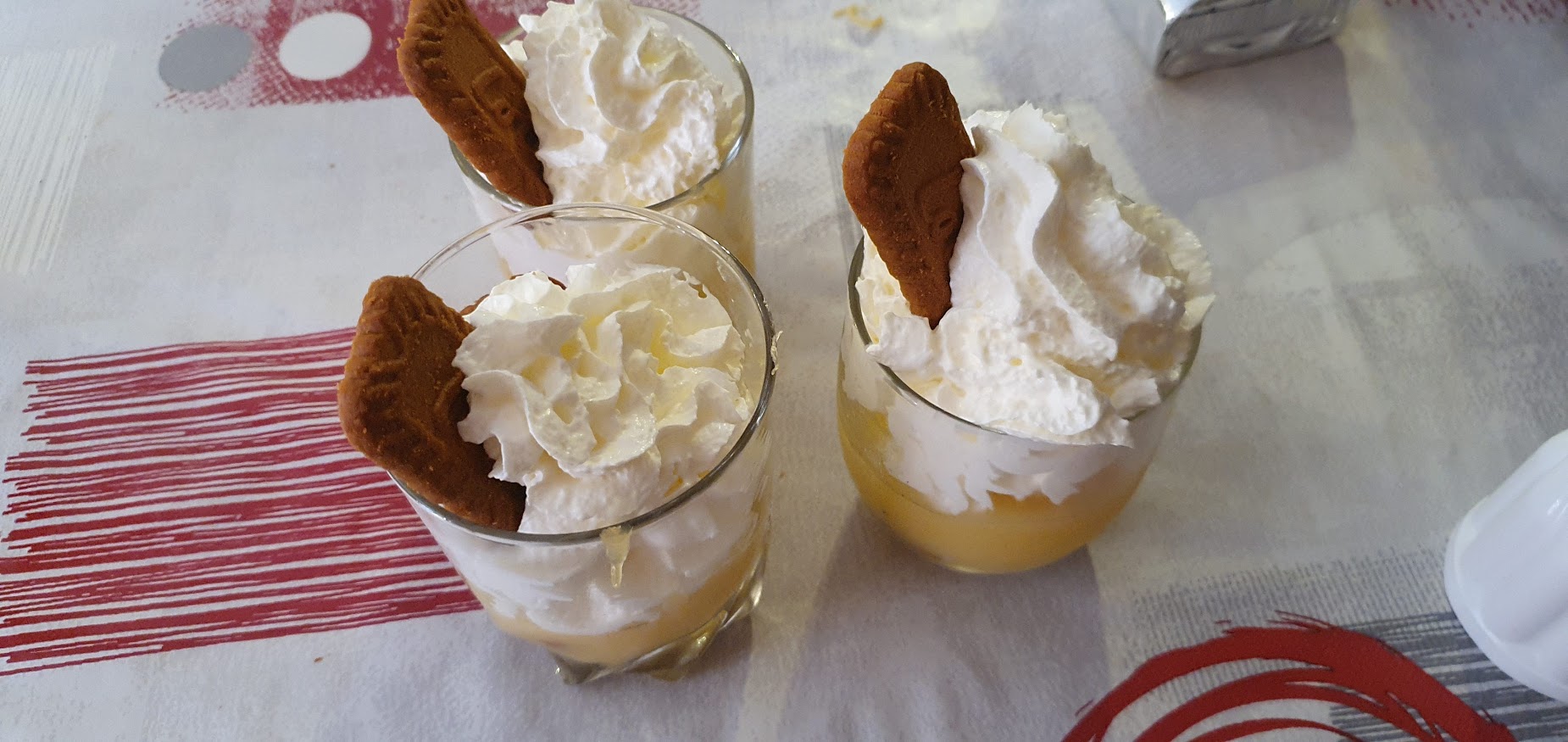 On peut servir frais dés le lendemain avec de la chantilly et un gâteau entier de Spéculoos sur le dessus.